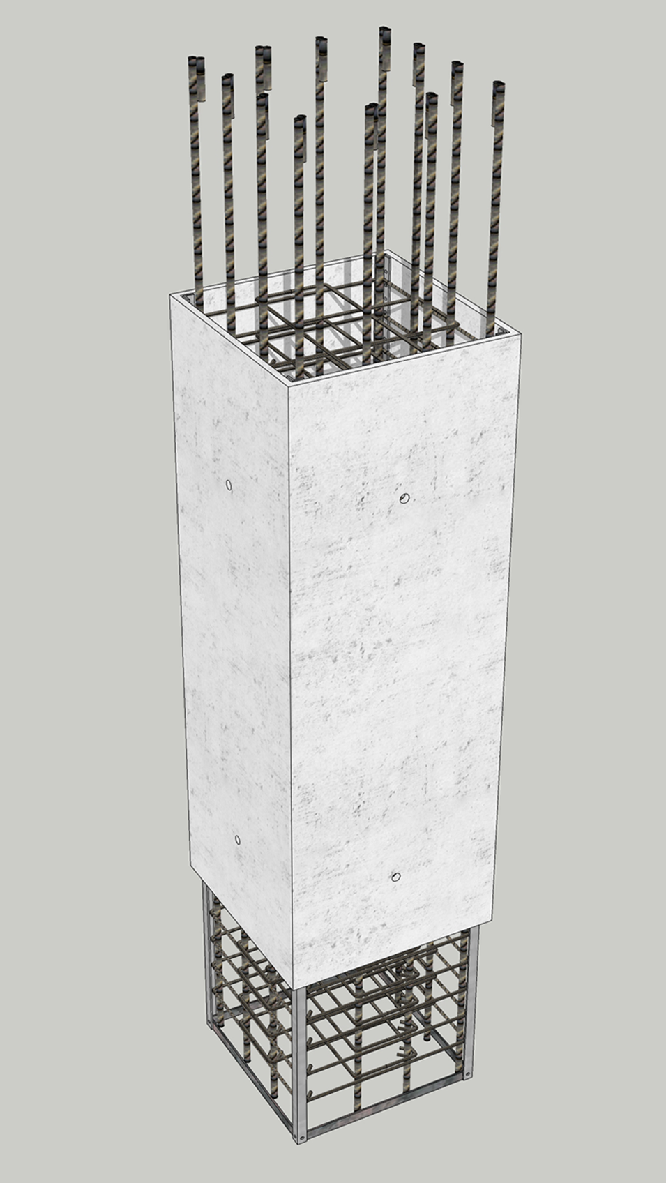 No.2 | 結構安全 豎向鋼筋采用PCT搭接連接或機械套筒連接方式,避免灌漿套筒的施工風險和檢測困難;結構整體現澆,模殼作為保護層增加對鋼筋的有效保護,可減小柱截面;其套箍效應可增強受力性能 | |